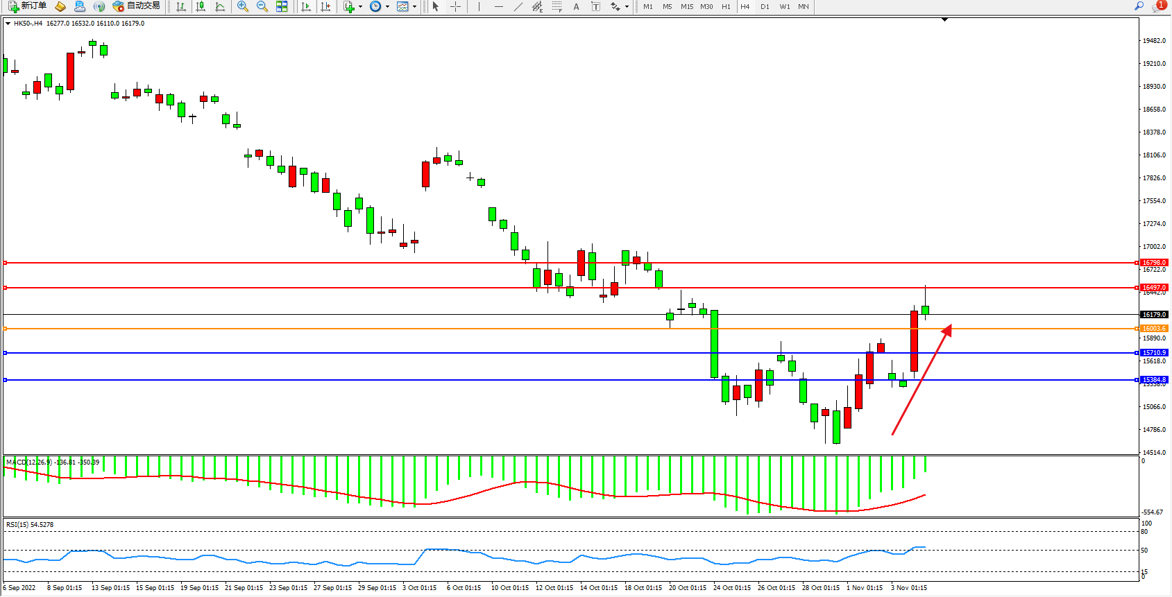 恒指HK50 4小时图