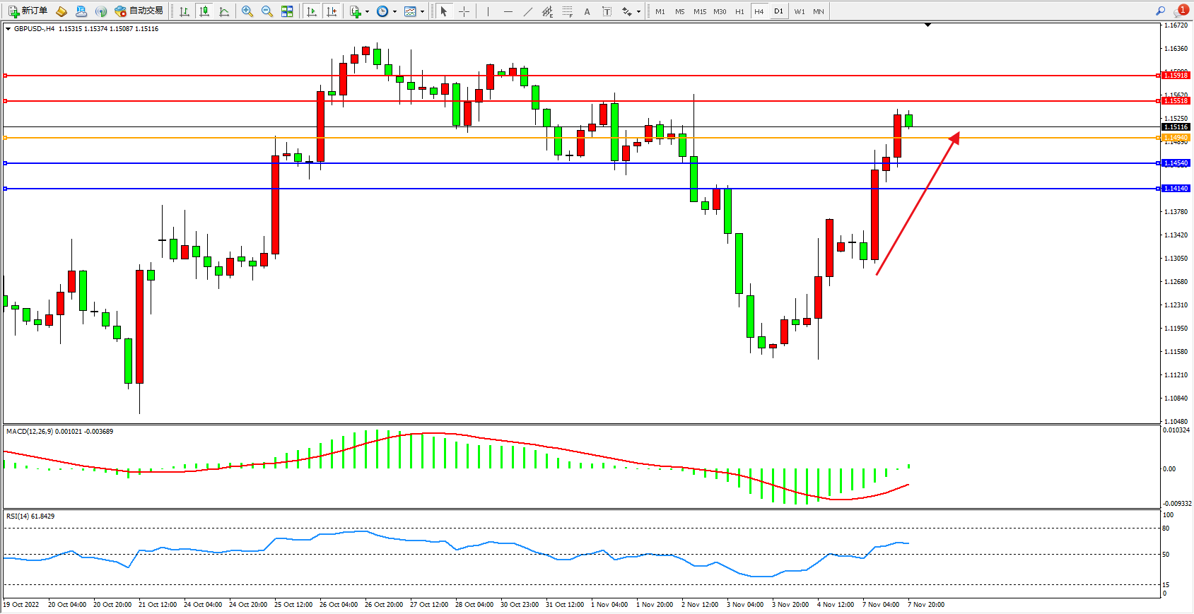 交易策略:1.14940上方看涨,目标1.15518、1.15918