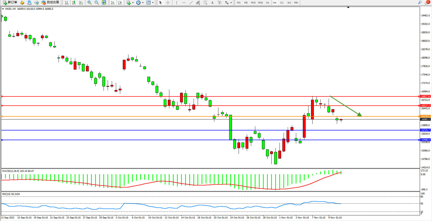 4小时图看:空头持续回撤下移,短期跌势或将延续,MACD指标处于0轴线上側弱势整理,RSI指标处于50均衡线附近弱势徘徊;