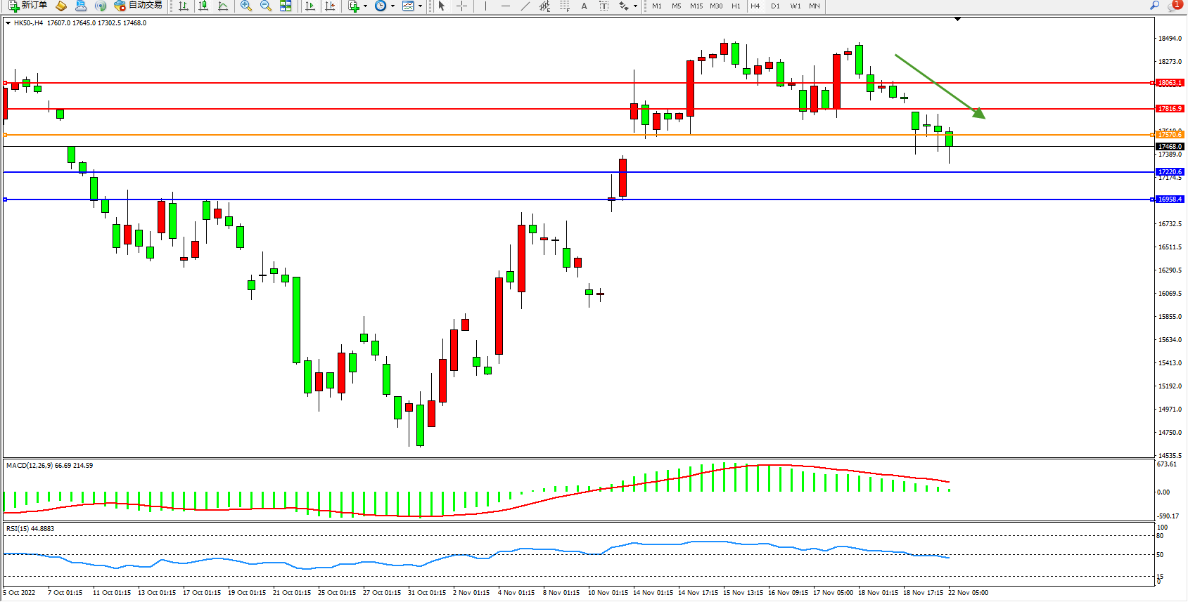 恒指HK50 4小时图