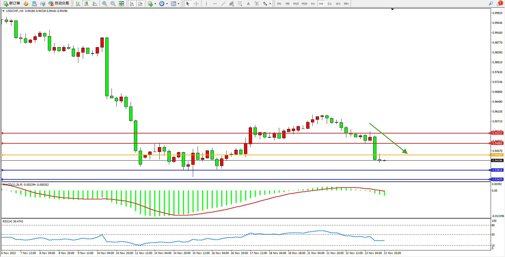 交易策略:0.94409下方看跌,目标0.93818、0.93459