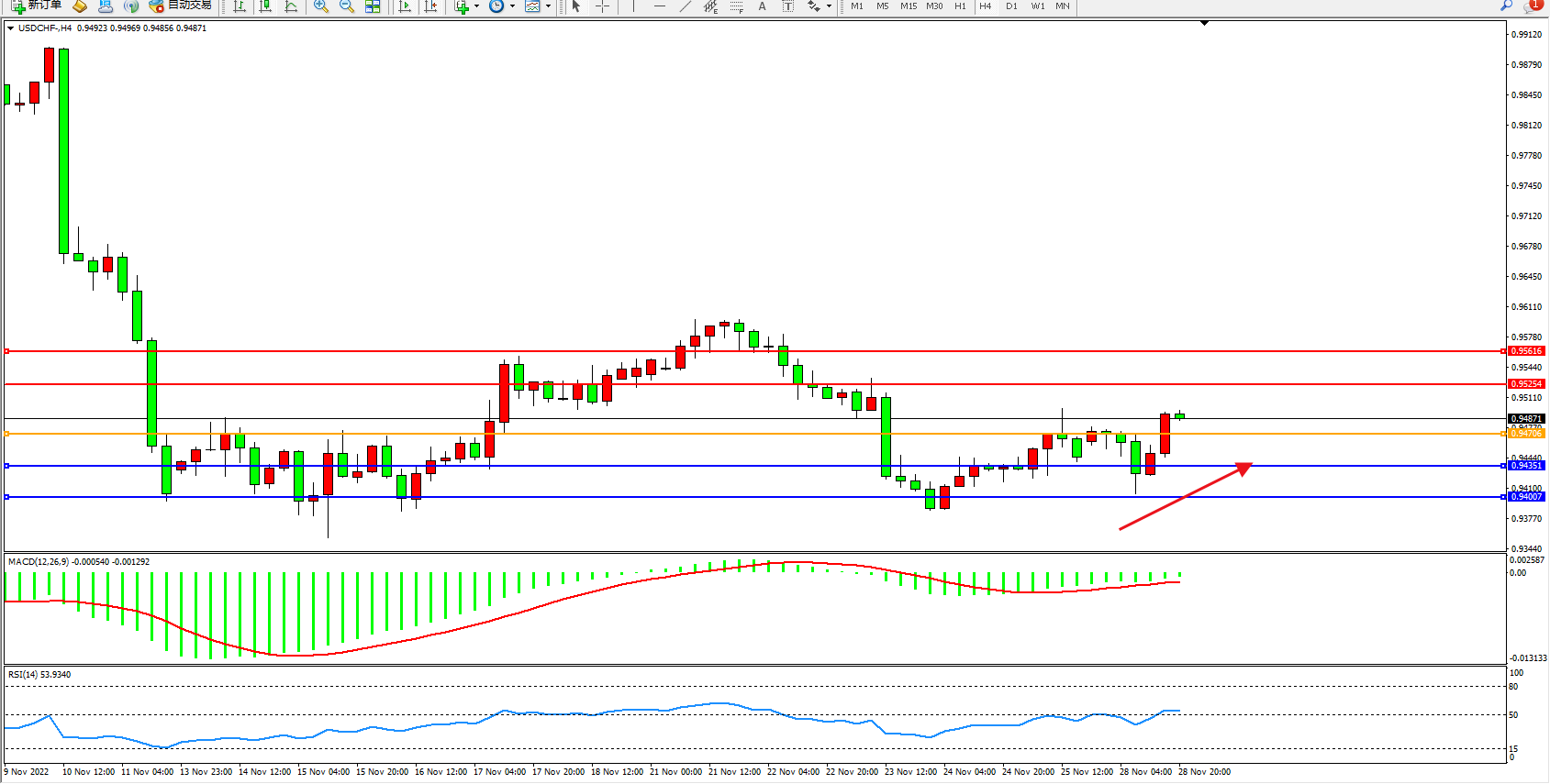 交易策略:0.94706上方看涨,目标0.95254、0.95616