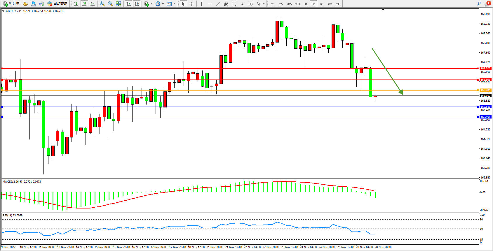 4小时图看:空头动力急速下挫,短期跌势或将延续,高位下行态势良好,MACD指标处于0轴线下侧弱势整理,RSI指标处于50均衡线下侧弱势整理;