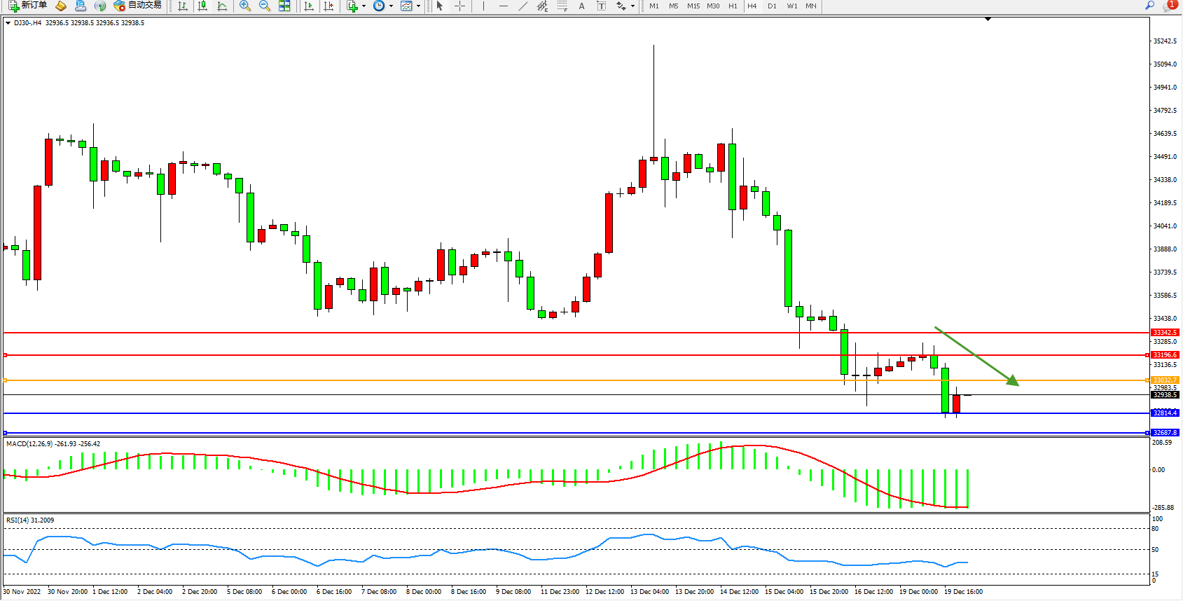 道琼斯指数12月19日(周一)收盘下跌162.92点,跌幅0.49%,报32757.54点;美国股市势将迎来全球金融危机以来表现最糟的一年,市场认为企业利润将遭遇同样的命运。即将到来的盈利衰退“本身可能类似于2008/2009年的情景”。这可能引发股市跌至新低,“比大部分投资者目前预期的情况糟得多”。