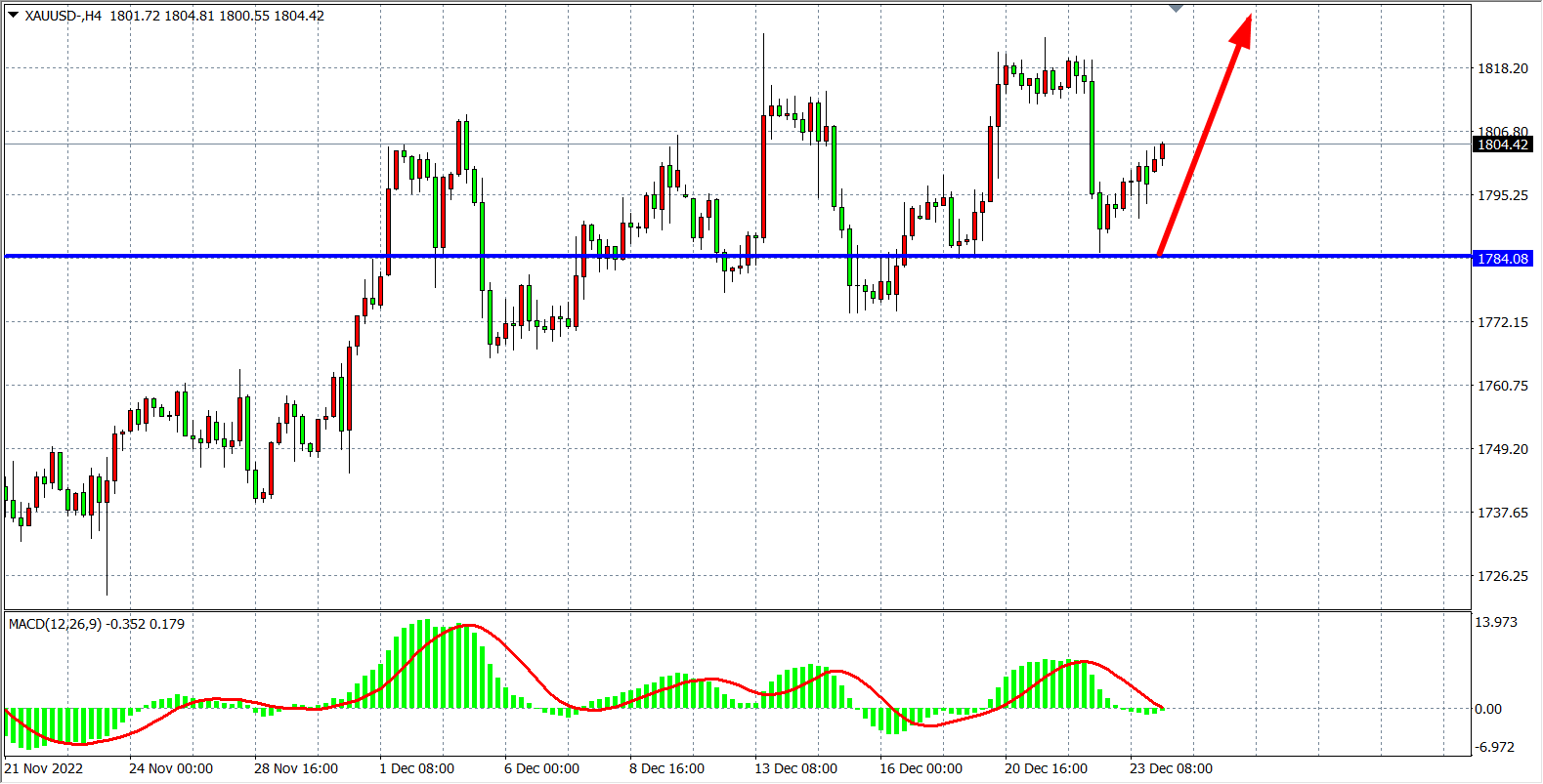 交易策略:在1784.00之上看涨,目标1805.00 1825.00