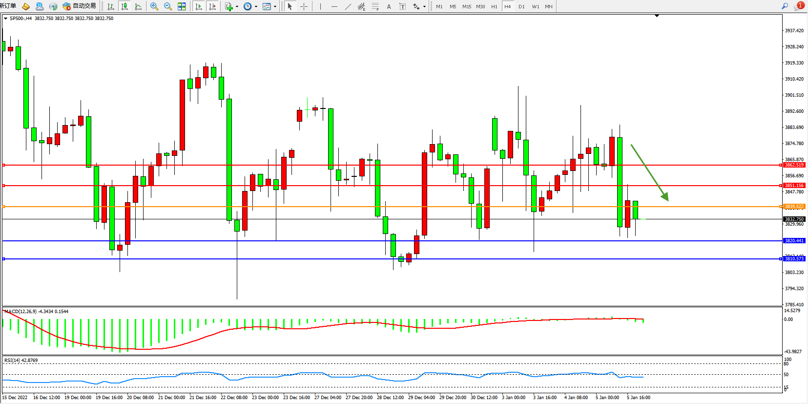 标普500指数1月5日(周四)收盘下跌44.64点,跌幅1.16%,报3808.33点;美国至12月31日当周初请失业金人数 20.4万人,预期22.5万人,前值22.5万人。为2022年9月24日当周以来新低。