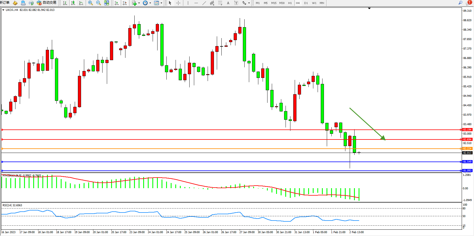 交易策略:82.224下方看跌,目标81.549、81.093