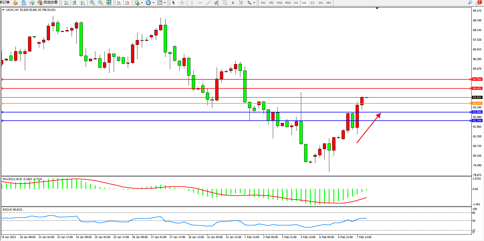 布油UKOil——4小时K线图显示: