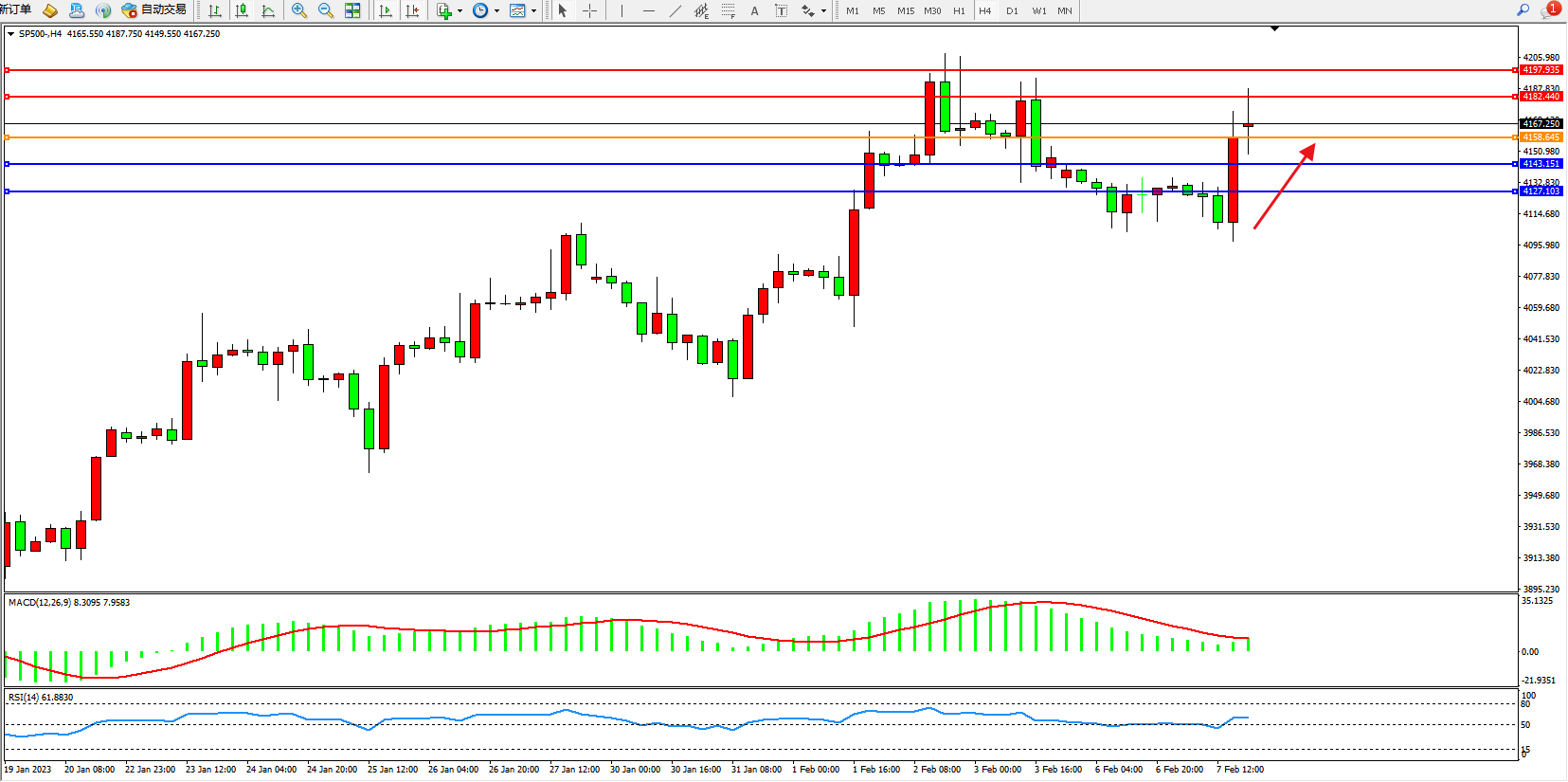 标普500指数2月7日(周二)收盘上涨52.83点,涨幅1.29%,报4163.91点;美联储希望将联邦基金利率从目前的4.5%-4.75%上调至5%-5.25%的区间,随后保持不变。上周五的非农就业报告公布后,市场已经消化了这一终端利率,但仍押注于今年晚些时候开始降息。美联储全年都将与这些市场预期展开拉锯战。