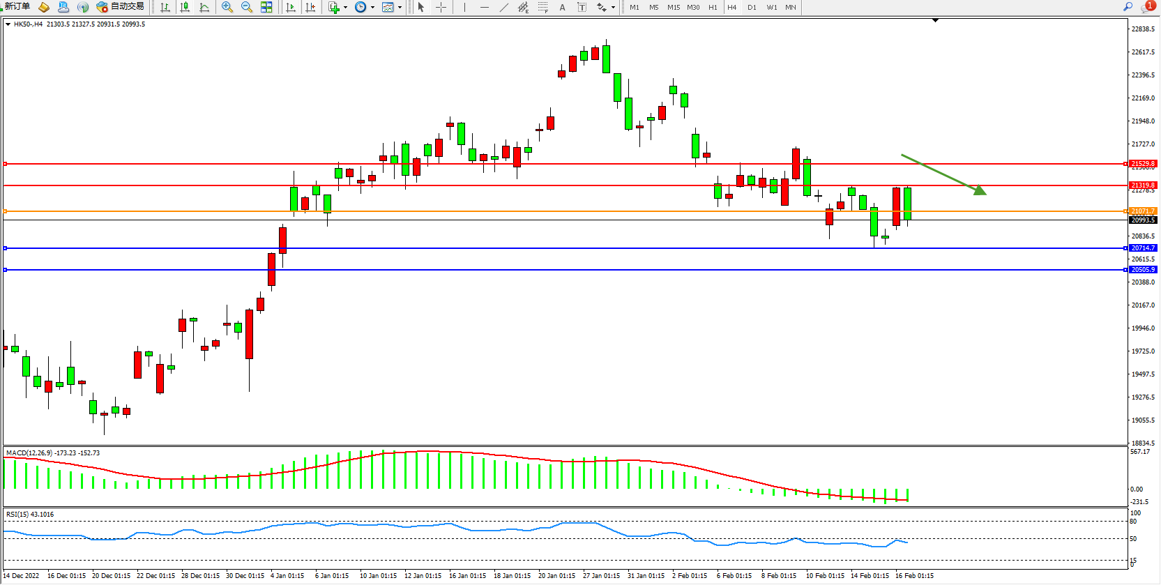 恒指HK50 4小时图