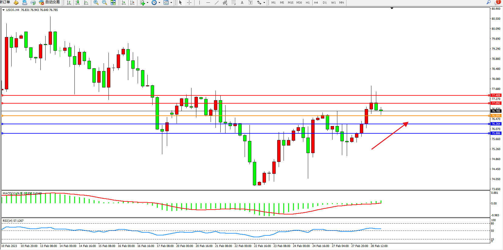 原油维持76.785附近震荡,中国燃料需求强劲回升以及其他产油国供应疲软将推动石油市场在今年下半年出现供应短缺,导致石油输出国组织(OPEC)在6月会议上取消减产。