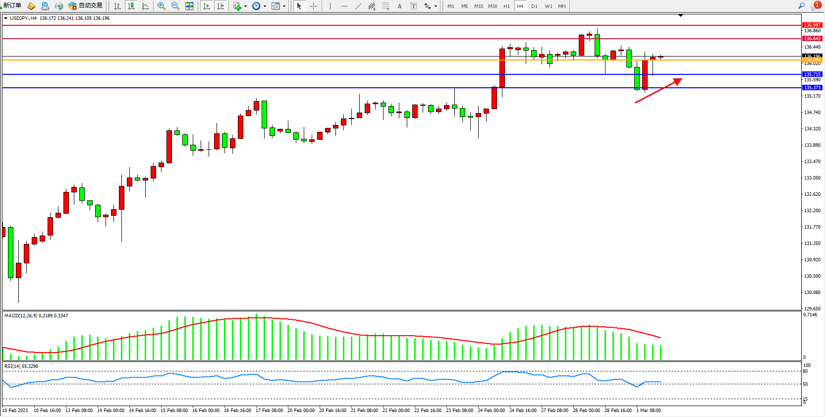 美元兑日圆维持136.196附近震荡,日本压低收益率的政策意味着日元对其他地方的收益率走势很敏感,即将上任的日本央行总裁植田和男表示调整政策发表评论还为时过早。同样淡化了立即全面改革超宽松货币政策的可能性。