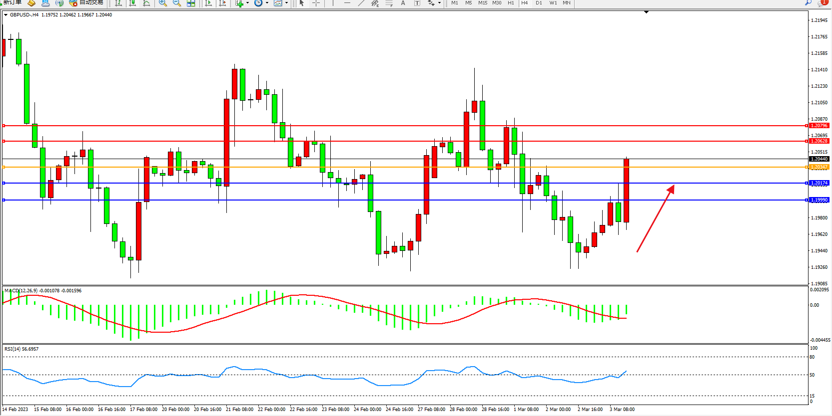 4小时图看:多头动力强势拉升,市场看涨情绪涌现,短期有继续向上移动态势,MACD指标处于空头区域整理上移,RSI指标处于50均衡线附近弱势徘徊;