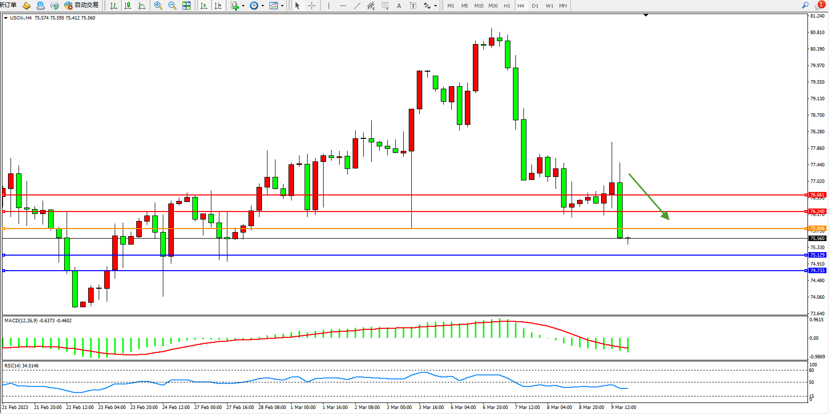 阻力位:76.240 76.661