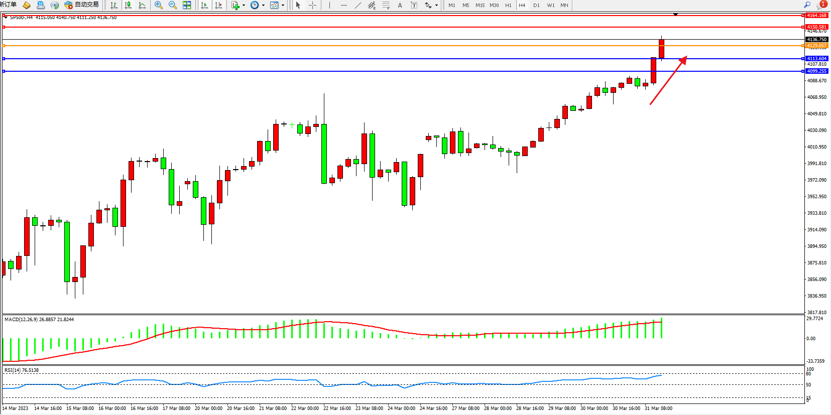 标普500指数3月31日(周五)收盘上涨58.48点,涨幅1.44%,报4109.31点;美国商务部的报告显示,美联储首选的通胀指标个人消费支出 (PCE) 指数2 月份环比上涨 0.3%,而 1 月份的涨幅为 0.6%。