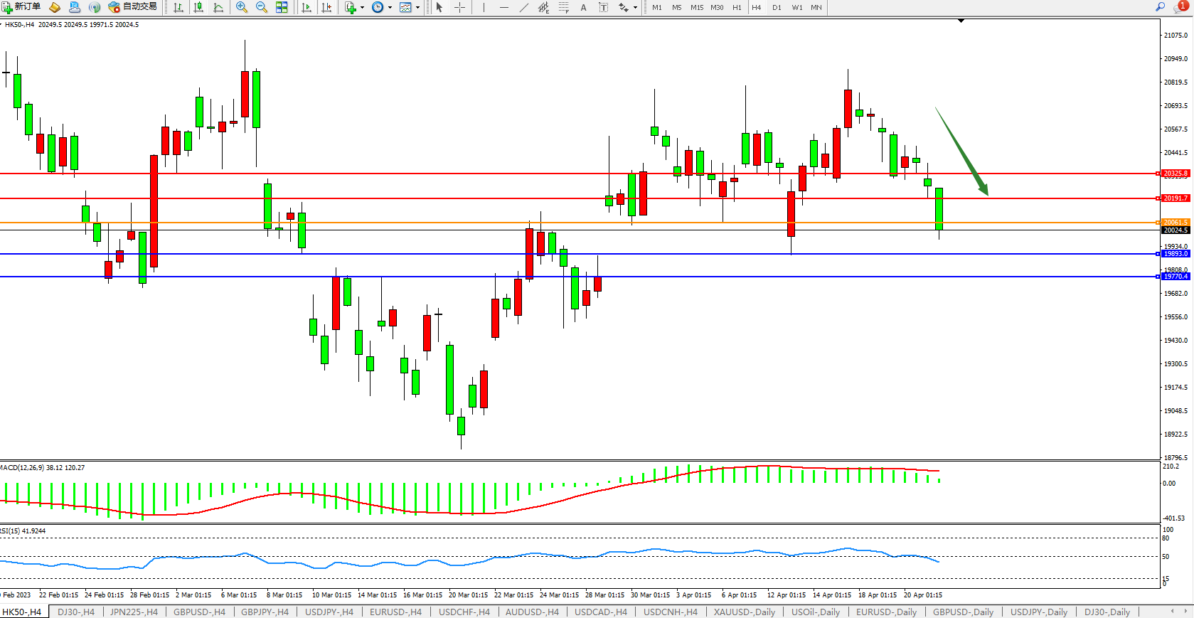 香港恒生指数4月21日(周五)收盘下跌321.24点,跌幅1.57%,报20075.73点;拜登将签行政令限制美企对华关键领域投资,港股三大指数午后跌幅明显加大,恒生科技指数大幅收跌3.13%,恒指、国指分别跌1.57%和1.9%,恒指险守2万点关口。本周三大指数全线下跌,恒科指周跌4.66%跌幅较大。因拜登最新发声,科技股与半导体跌幅靠前,商汤、美团跌幅较大,军工行业将迎来触底反弹行情,军工股逆势上扬,南下资金全日净流入42.58亿港元,大市成交额为1061亿港元。
