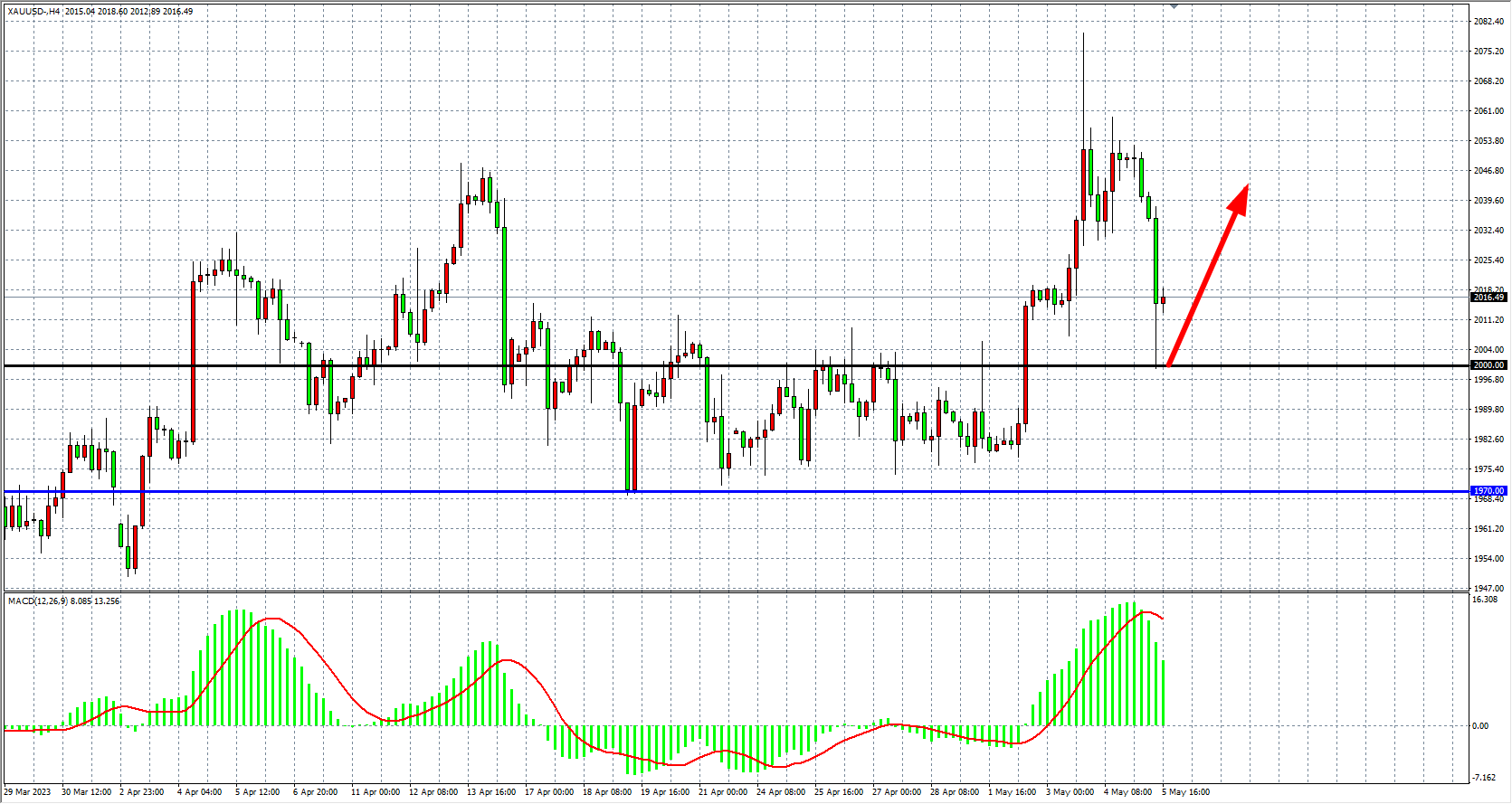 现货黄金XAUUSD 四小时图