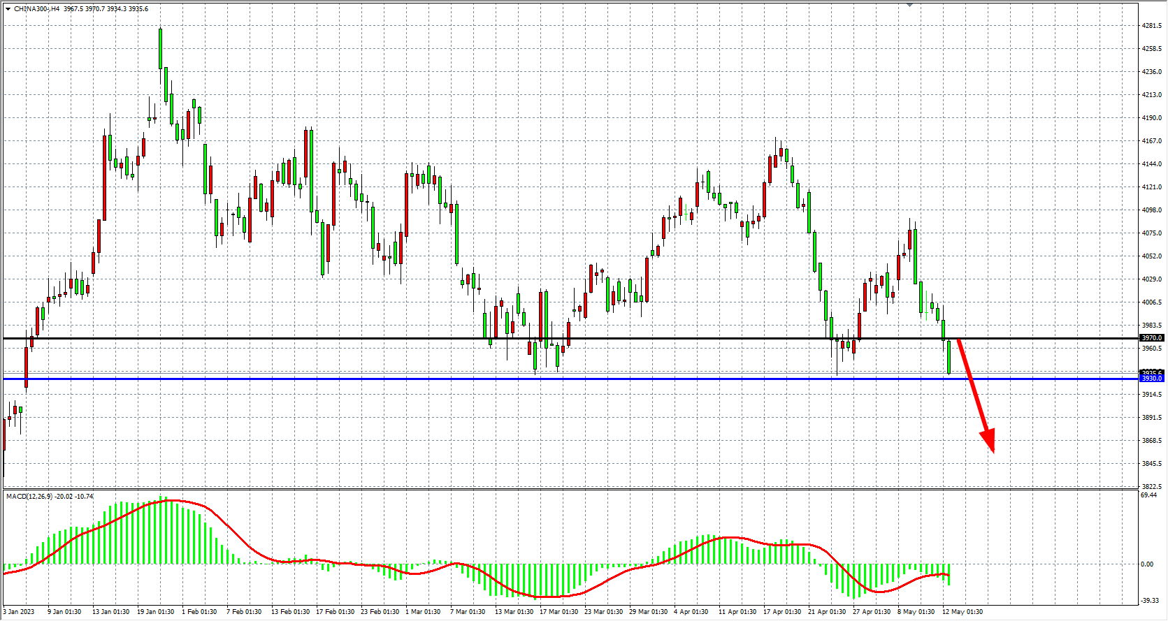 4小时图看,沪深300进一步回落下破3950点,趋势继续走弱,MACD量能在零轴下有所放量,当前压力下移至3970附近,该位之下继续看跌,目标3900-3850附近。