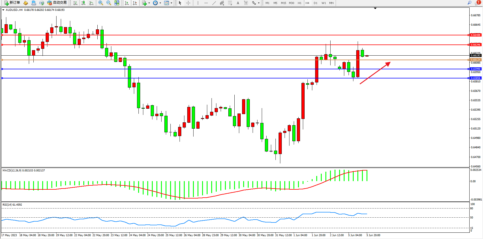 交易策略:0.66124上方看涨,目标0.66346 0.66488