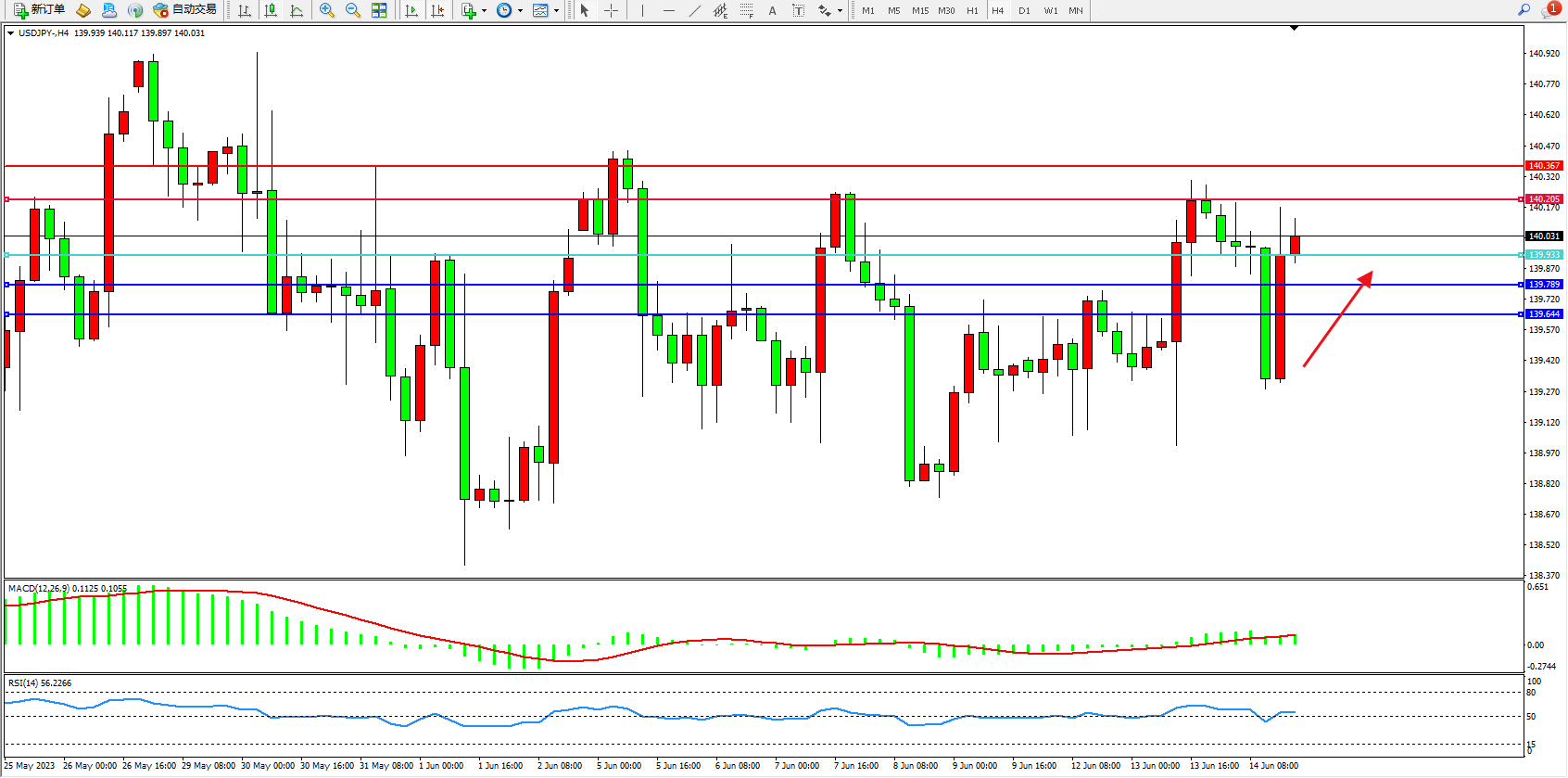 4小时图看:短期空头急速下挫后反转上移,市场多头情绪持续,MACD指标处于0轴线上側整理,RSI指标处于50均衡线上側弱势徘徊;