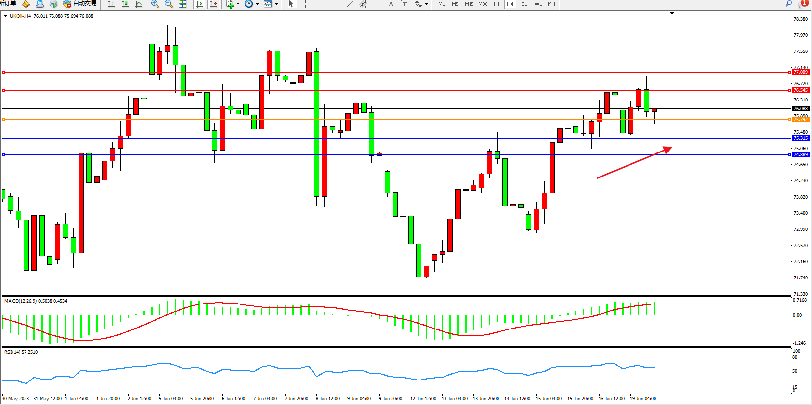 布油维持76.088附近震荡,沙特的减产不太可能维持在80美元或90美元的高位,原因是需求低迷,而非OPEC国家的供应在年底前会增加。