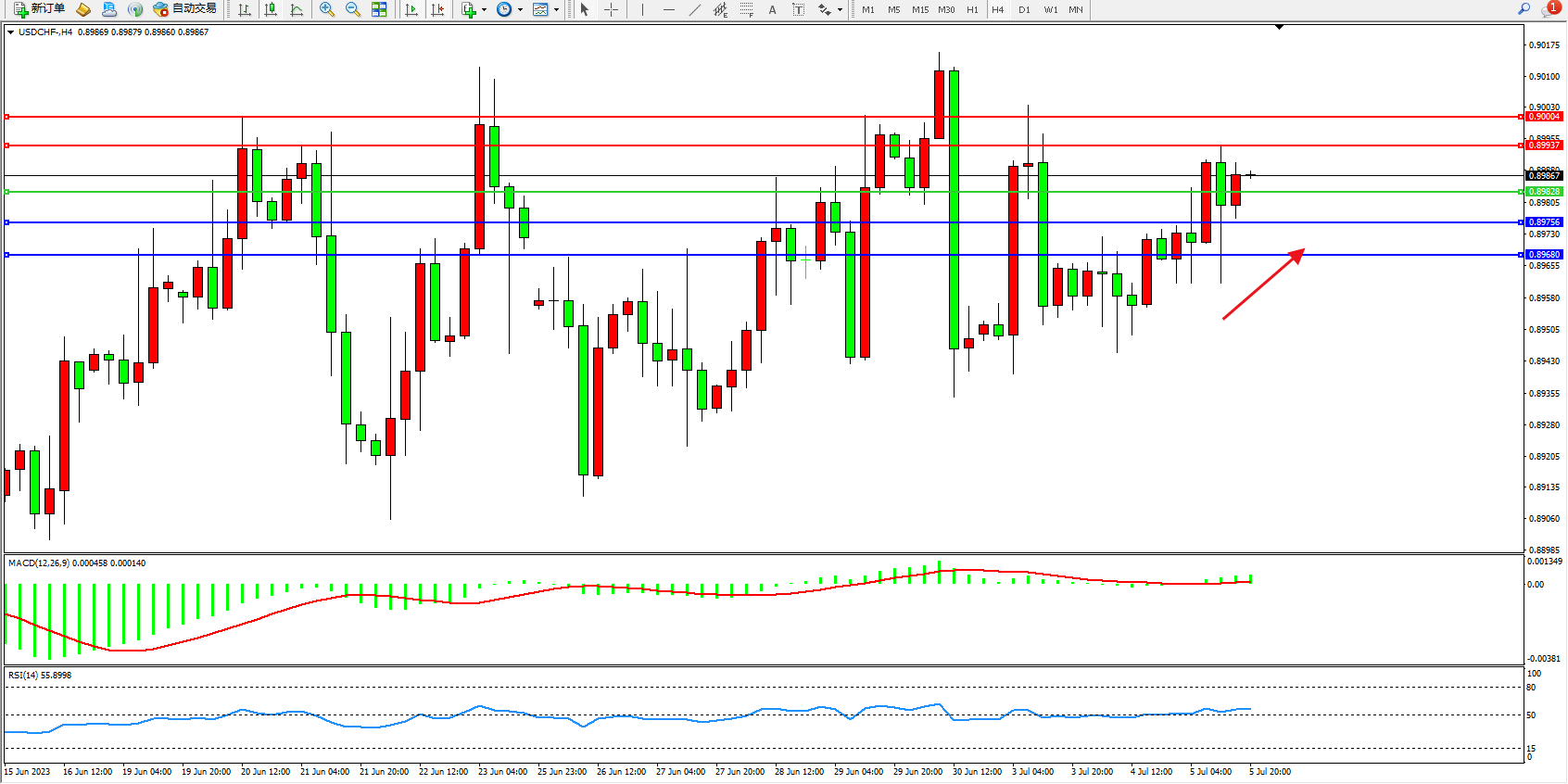 交易策略:0.89828上方看涨,目标0.89937 0.90004