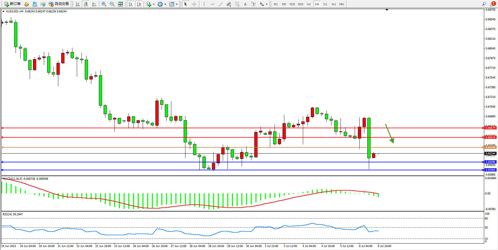 备选策略:0.66348上方看涨,目标0.66518  0.66679