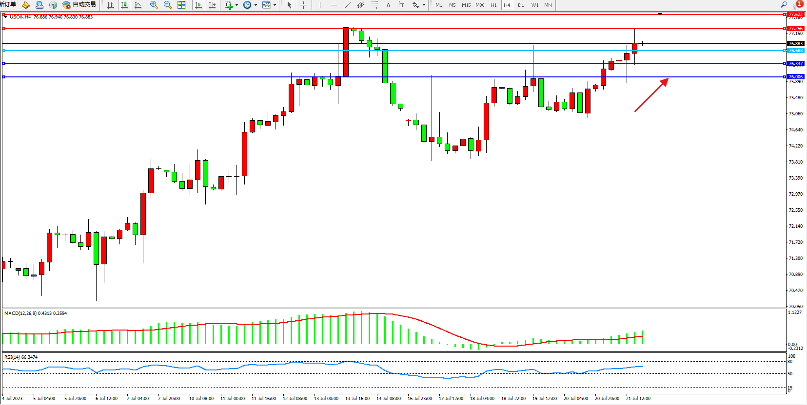 原油维持76.883附近震荡,石油输出国组织(OPEC)和国际能源署(IEA)表示,预计今年下半年中国的需求将继续增长,并仍将是全球增长的主要驱动力。
