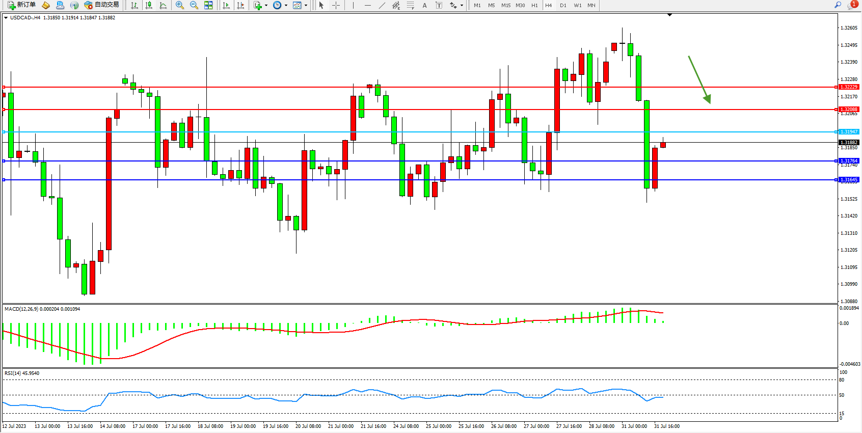 美元兑加元维持1.31882附近震荡,沙特供应削减导致供需缺口回升,而且市场已经放弃了经济增长悲观情绪。市场仍然预计额外减产100万桶/日的举措将持续到9月份,并从10月份开始减半。