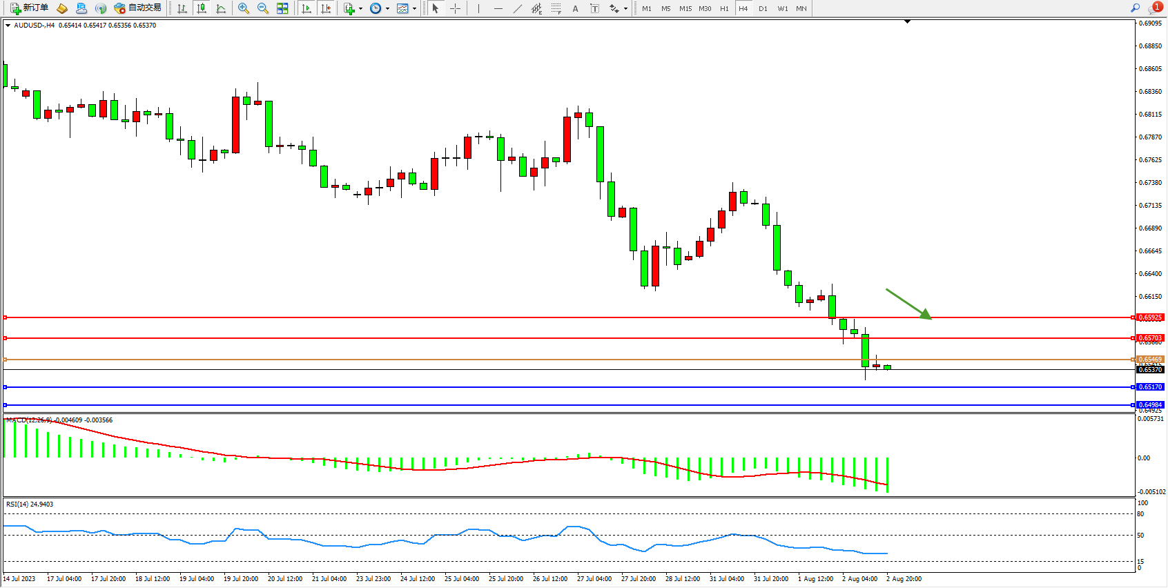 交易策略:0.65469下方看跌,目标0.65170 0.64984