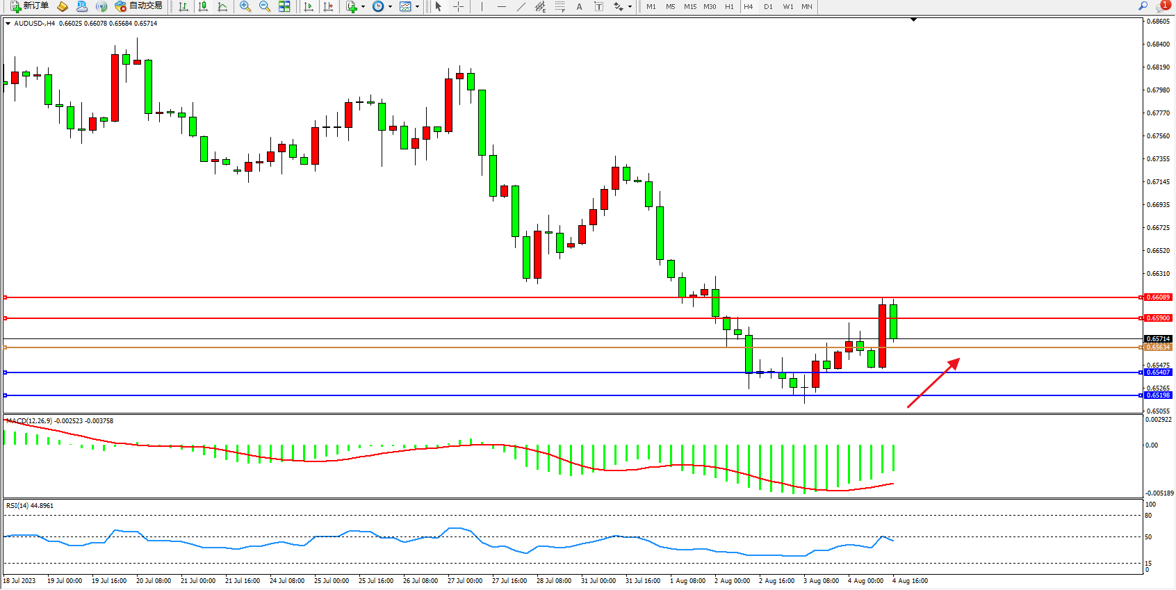 交易策略:0.65634上方看涨,目标0.65900  0.66089