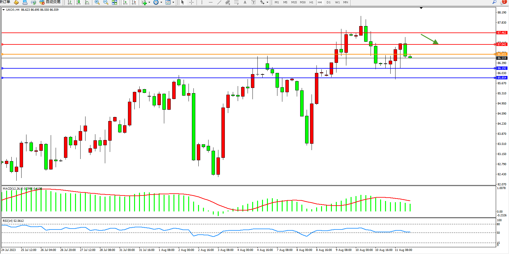 布油UKOil——4小时K线图显示:
