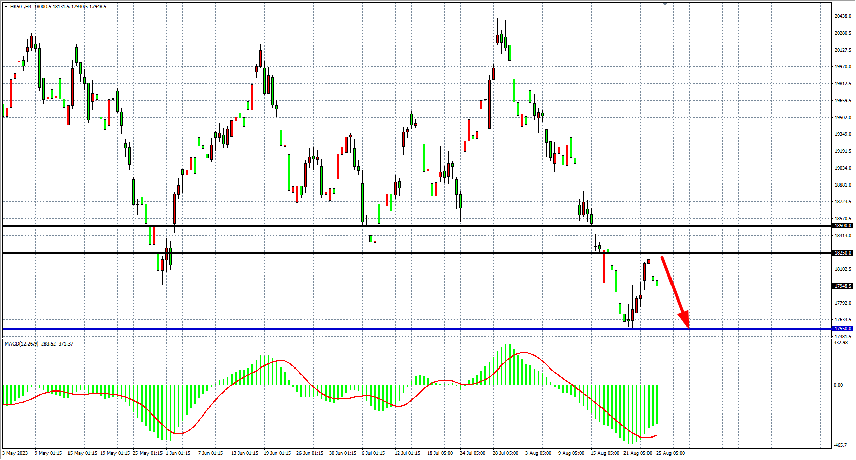 交易策略:18250 下方看跌,目标 17550 17200
