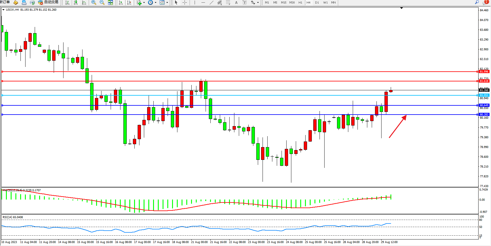 原油维持81.260附近震荡,市场对全球经济前景的预期不佳,仍令投资者担忧需求前景,而且市场对美联储11月份加息预期升温,也打击原油多头士气。