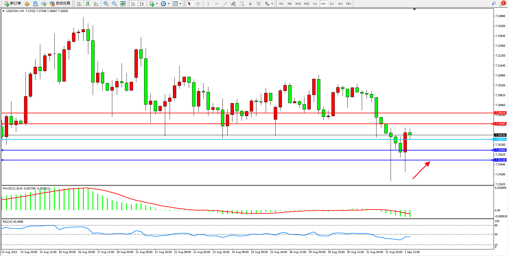 备选策略:7.26634下方看跌,目标7.25906 7.25238