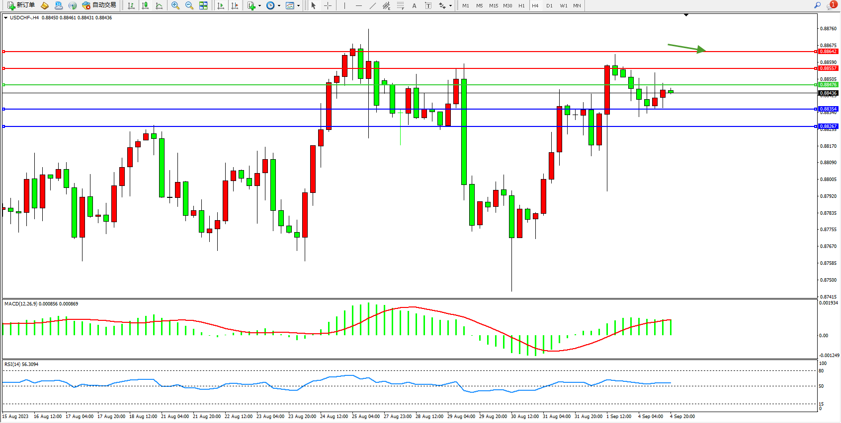 备选策略:0.88476上方看涨,目标0.88557 0.88642