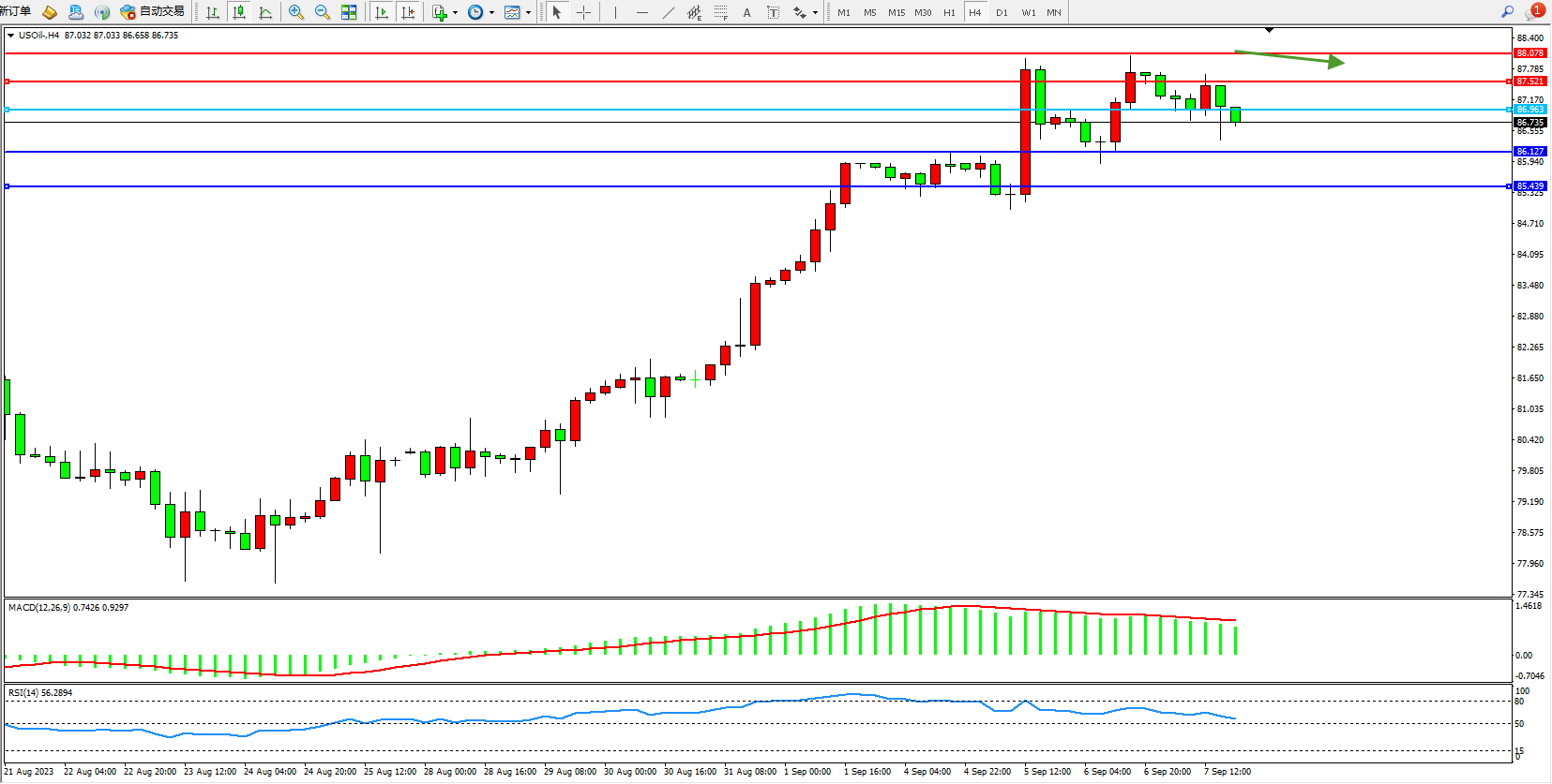 原油维持86.735附近震荡,美国至9月1日当周EIA原油库存 -630.7万桶,预期-206.4万桶,前值-1058.4万桶。EIA俄克拉荷马州库欣原油库存 -175万桶,前值-150.4万桶。