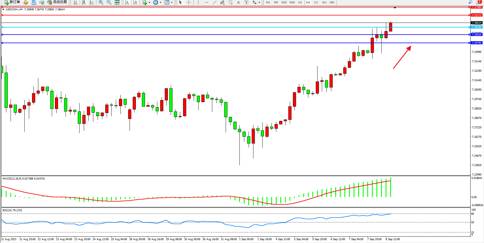 交易策略:7.36186上方看涨,目标7.37272 7.37980