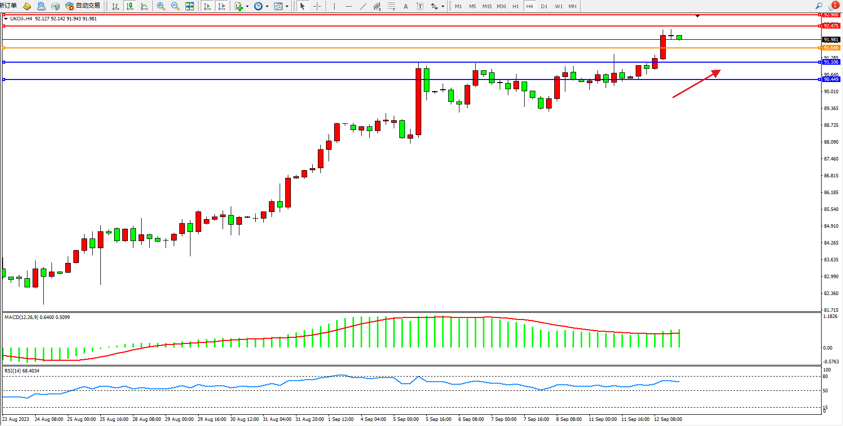 布油UKOil——4小时K线图显示: