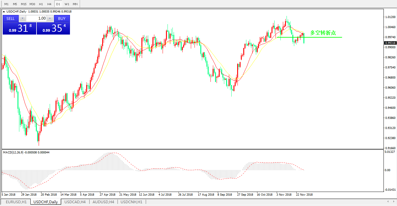 美元兑瑞郎USDCHF天图