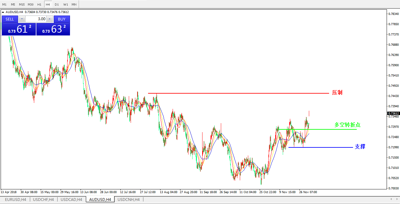 基本面简析:G20峰会过后,市场对国际贸易担忧情绪明显缓解,给原油和商品货币提供了上涨动能,亚洲股市开盘也大涨,澳洲综合指数,日经指数,韩国综合指数均涨幅超1%
