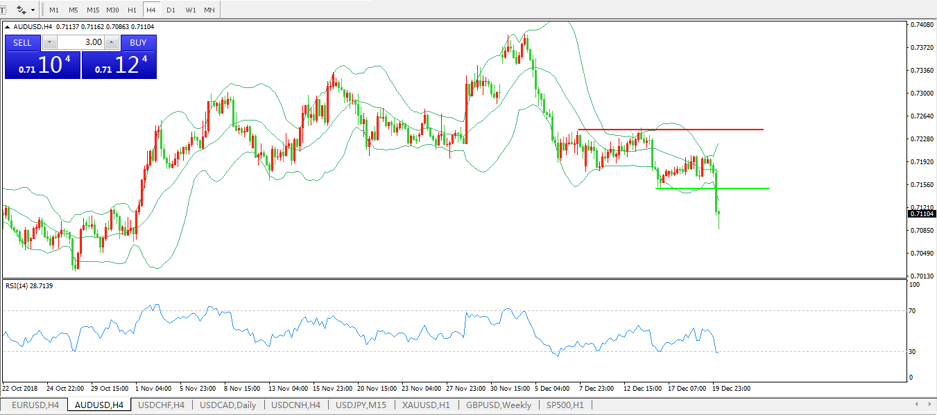 交易策略:在0.7148之下,看跌,目标价位为0.7085,然后为0.7049。