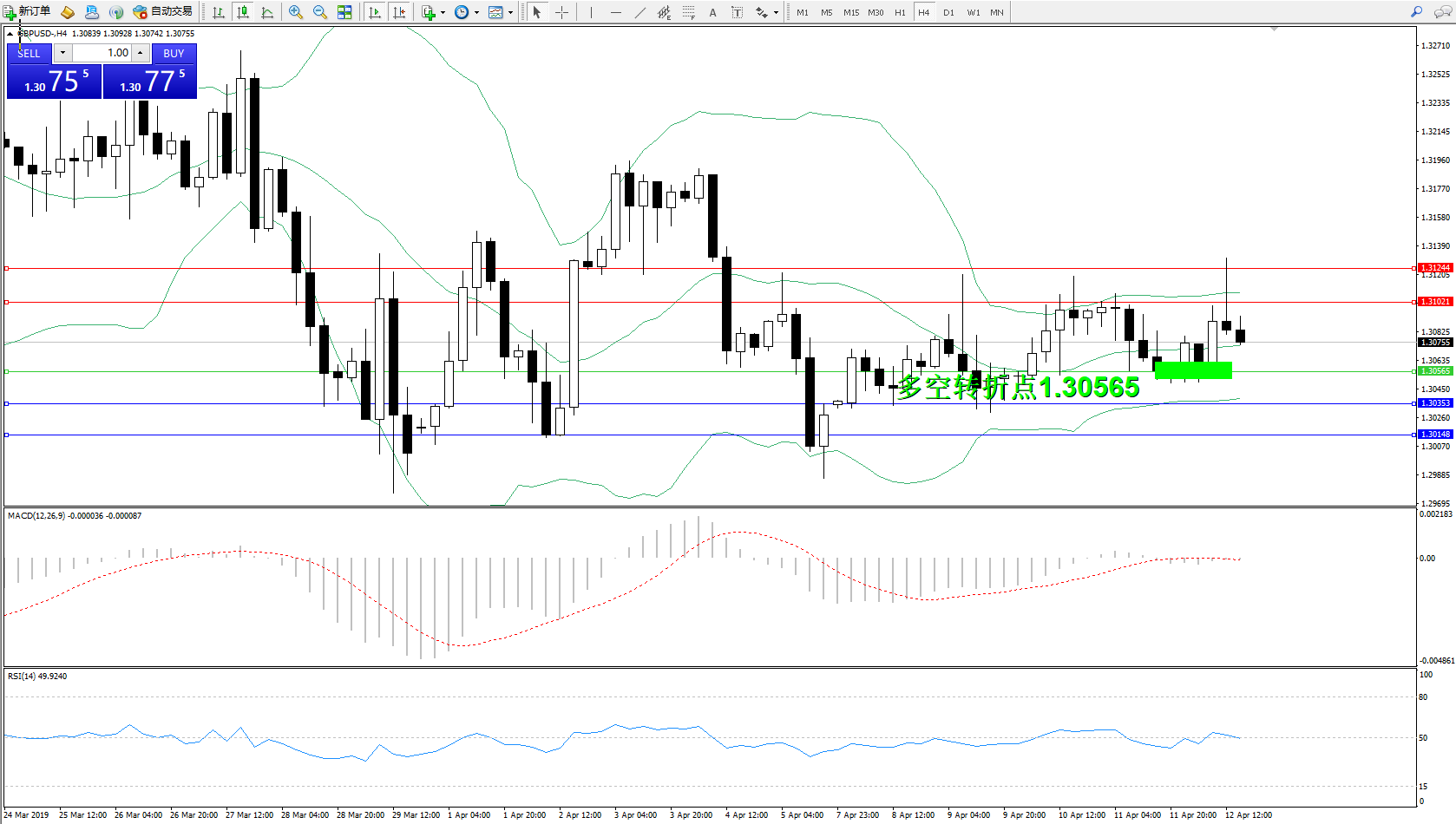 交易策略:1.30565上方看涨,目标1.31021、1.31244