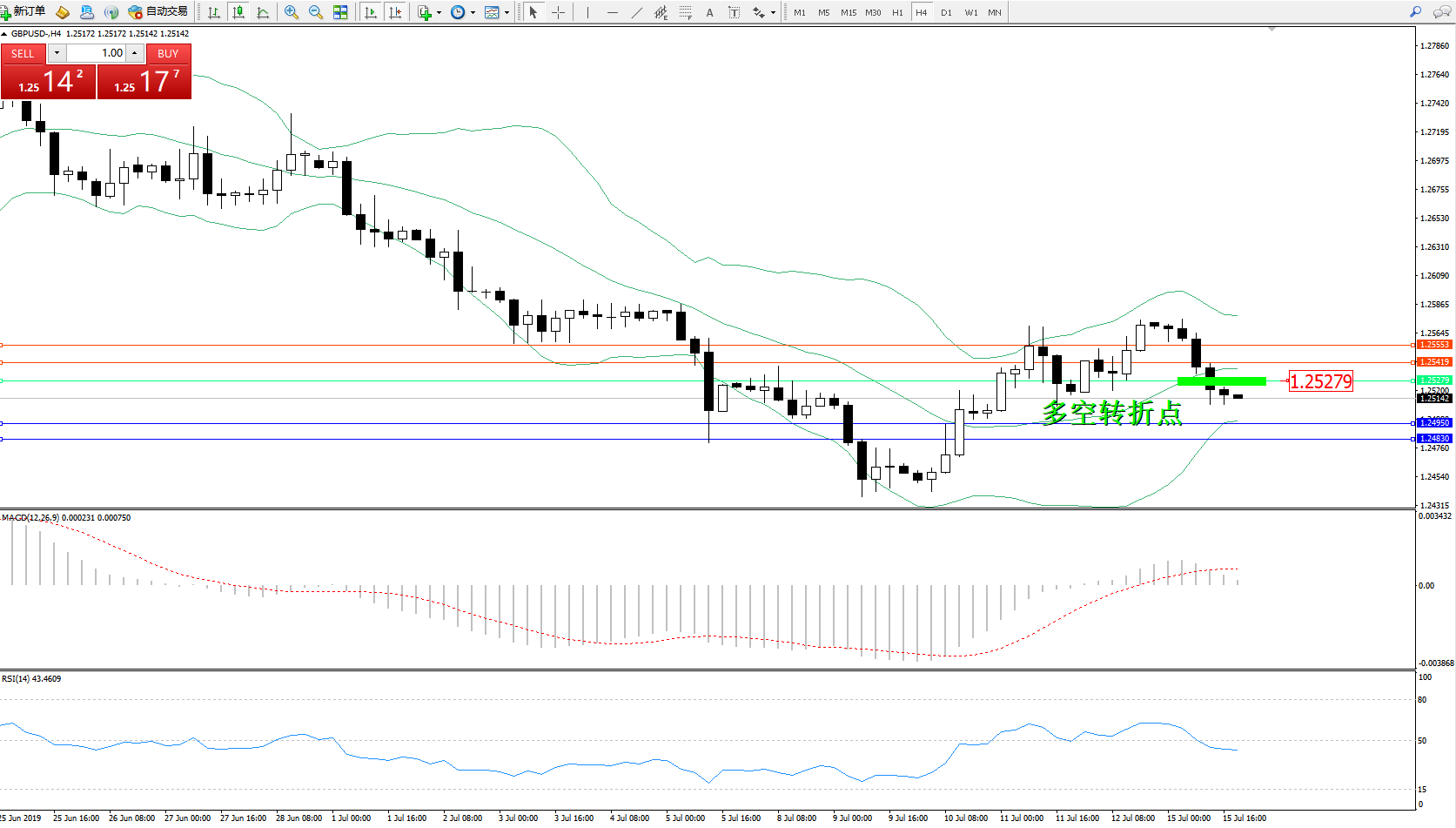 交易策略:1.25279下方看跌,目标1.24950、1.24830