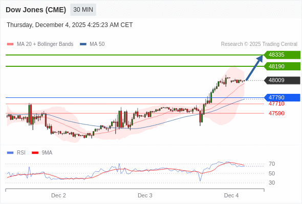 在 47790 之上,看涨,目标价位为 48190 ,然后为 48335 。
