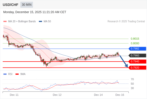在 0.7970 之下,看跌,目标价位为 0.7940 ,然后为 0.7920 。
