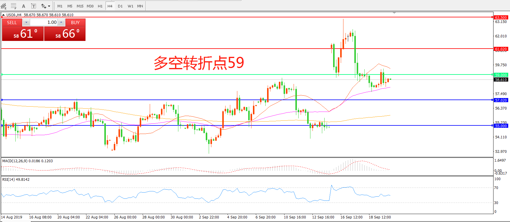交易策略: 在59.00之下看跌,目标57.00   55.00