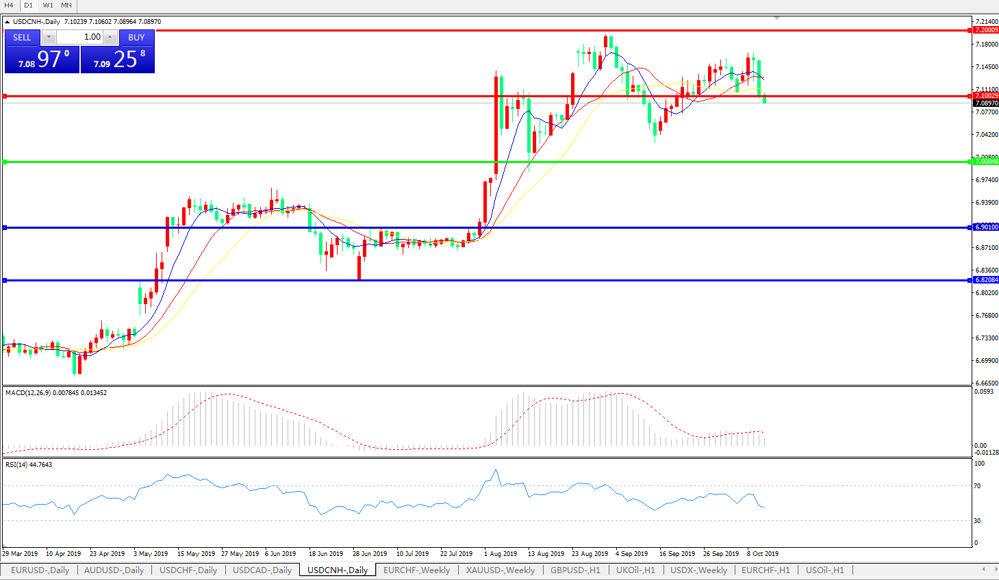 技术面简析:日图短期均线快速拐头下行,汇价早盘骤跌破位7.10关口,MACD运行于0轴上方但量能有缩量迹象,RSI快速走低,预计短期汇价随贸易谈判有所反复但中期汇价大概率将下行,上方重点关注7.20-7.30区间的压制;中美贸易谈判再度开启,进展须持续关注。