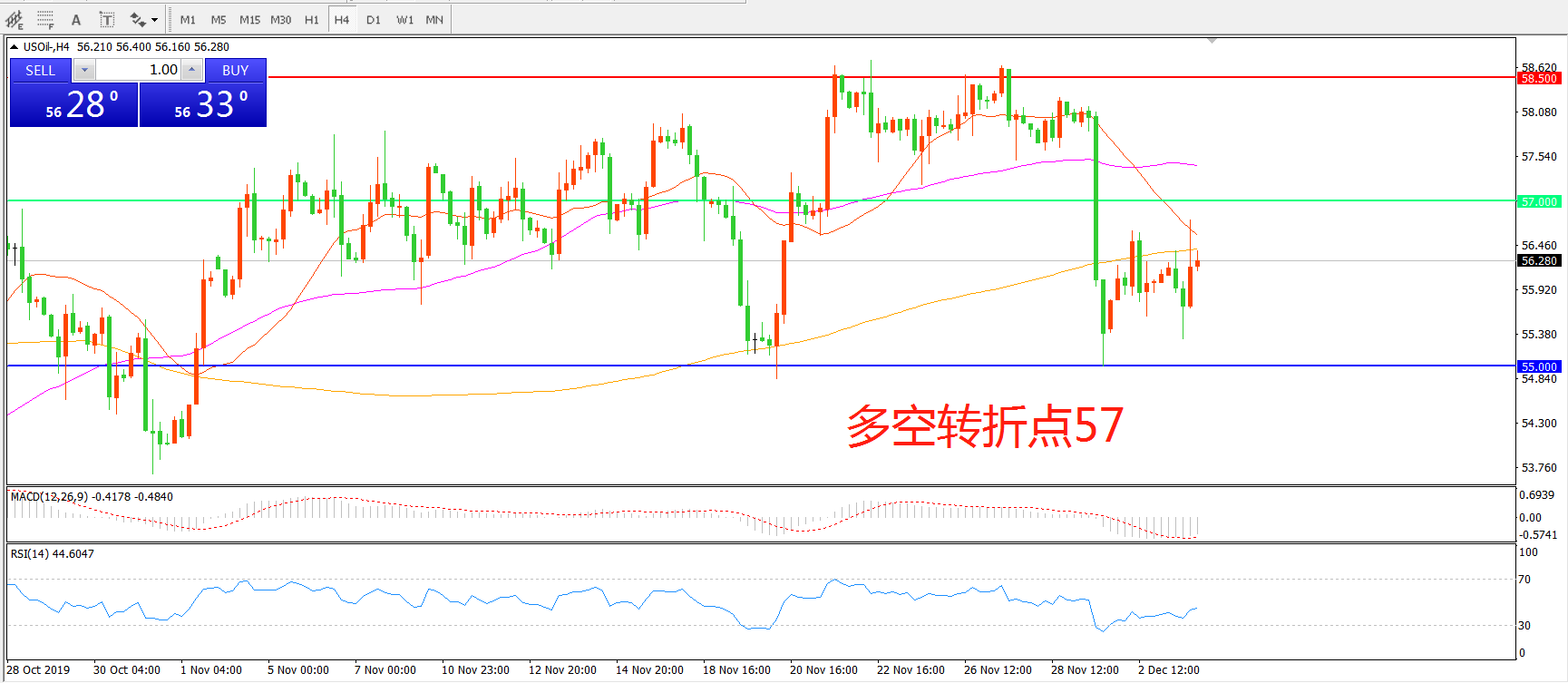 交易策略: 在57.00之下看跌,目标55.00 52.50