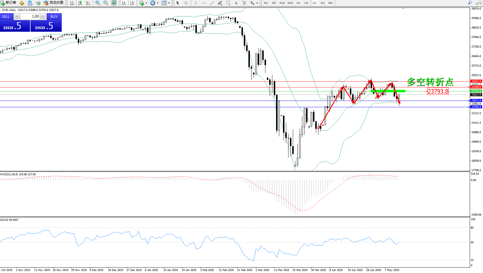 道琼斯指数5月14日(周四)收盘上涨377.40点,涨幅1.62%,报23625.34点。美股三大指数低开高走震荡回升,银行股超跌大涨,帮助股市摆脱了疲软经济数据和中美紧张局势所引发的悲观情绪。能源股也随油价大涨,这两个行业仍然是今年表现最差的板块,跌幅超过30%。道琼斯工业平均指数跑赢其他主要基准指数,受美国运通和思科大涨提振。疲软的就业数据和贸易局势一度拖累美股早盘大跌,一些投资者似乎开始看跌美国股市,贸易关系继续向着恶化的方向发展,来自美国的数据非常黯淡,所有这些都支持避险需求。在美国总统特朗普表示支持强势美元和发表有关中国的言论后,交易员们早些时候涌向美元;尽管数据显示上周美国首次申请失业救济人数仍然以百万计,美元依旧保持了涨势。